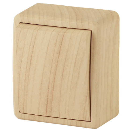 Выключатель 1-клавишный проходной серии Эра Эксперт открытой установки цвет сосна 11-1203-11. Номинальные характеристики 10А 250В. Выключатель выполнен из качественного поликарбоната, оснащён уникальными винтовыми клеммами ЭКСПЕРТ для максимально качественного зажима кабеля в механизме.