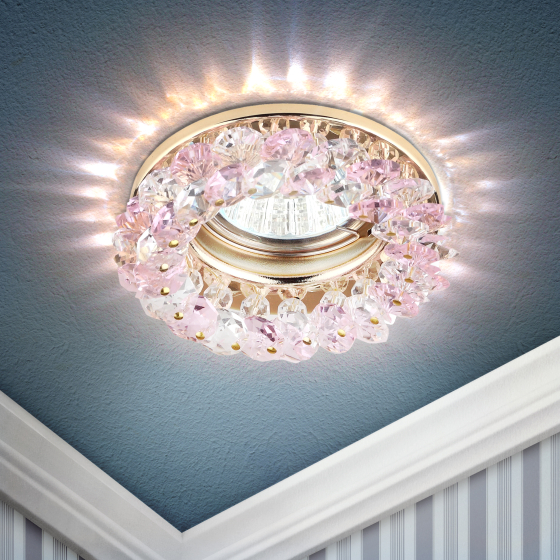 Встраиваемый светильник DK16 GD/WH/PK круглый с мелкими хрусталиками станет эффектным решением для любого помещения: его можно разместить в спальне, в детской или на кухне. Светильник можно использовать как в качестве базового освещения, так и для создания акцентов в определенных зонах комнаты. Благодаря скрытой части корпуса светильники можно встраивать в потолок или стены, создавая разный дизайн помещений. Встраиваемый светильник ЭРА с приятным дизайном подойдет для комнат с разным интерьером: от лофта до модерна, классицизма или минимализма. При помощи точечных светильников можно освещать только те участки помещения, которыми вы пользуетесь в данный момент, не затрачивая лишнюю элеткроэнергию. Максимальная мощность лампы составляет 50 Вт. Корпус встраиваемого светильника изготовлен из нержавеющей стали . Диаметр отверстия, требуемого для установки светильника составляет 65 миллиметров, а диаметр самого светильника – 90 миллиметров. Цоколь под лампу GU5.3 входит в комплект. Купив встраиваемый светильник бренда ЭРА, вы останетесь довольны и сможете создать уют в Вашем доме! Внимание: лампа не входит в комплектацию.