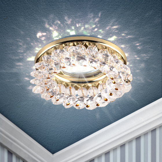 Встраиваемый светильник DK16 GD/WH круглый с мелкими хрусталиками станет превосходным решением для любого помещения: его можно разместить в спальне, в детской или на кухне. Светильник можно использовать как в качестве базового освещения, так и для создания акцентов в определенных зонах комнаты. Благодаря скрытой части корпуса светильники можно встраивать в потолок или стены, создавая разный дизайн помещений. Встраиваемый светильник ЭРА с приятным дизайном подойдет для помещений с разным интерьером: от минимализма до хай-тека, прованса или скандинавского стиля. При помощи точечных светильников можно освещать только те участки помещения, которыми вы пользуетесь в данный момент, не затрачивая лишнюю элеткроэнергию. Максимальная мощность лампы – 50 Вт. Корпус встраиваемого светильника изготовлен из нержавеющей стали. Диаметр отверстия, требуемого для установки светильника составляет 65 мм, а диаметр самого светильника – 90 мм. Цоколь под лампу GU5.3 в комплекте. Купив встраиваемый светильник бренда ЭРА, вы останетесь довольны и сможете создать уют в доме! Внимание: лампа не входит в комплектацию.