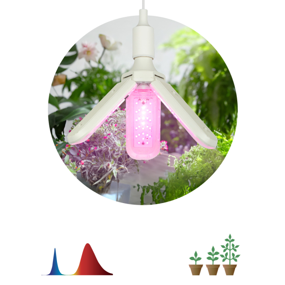 Рекомендованная высота от лампы до листьев от 15 до 75 см. Прозрачный рассеиватель и белый глянцевый корпус лампы позволили ее сделать максимально энергоэффективной. Лампа клевер ЭРА FITO-24W-RB-E27-FOLD на первый взгляд кажется странной и непривычной, но в лепестковой лампе за счет распределения печатных плат на большой площади проблема с отводом тепла с диодов решается намного легче и дешевле, чем в радиаторных лампах.