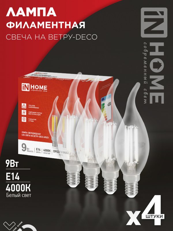 Cветодиодные лампы филамент LED-СВЕЧА НА ВЕТРУ-deco позволяют сочетать классический стеклянный корпус и широкий угол освещения с экономичным энергопотреблением и широким выбором цветовых температур.