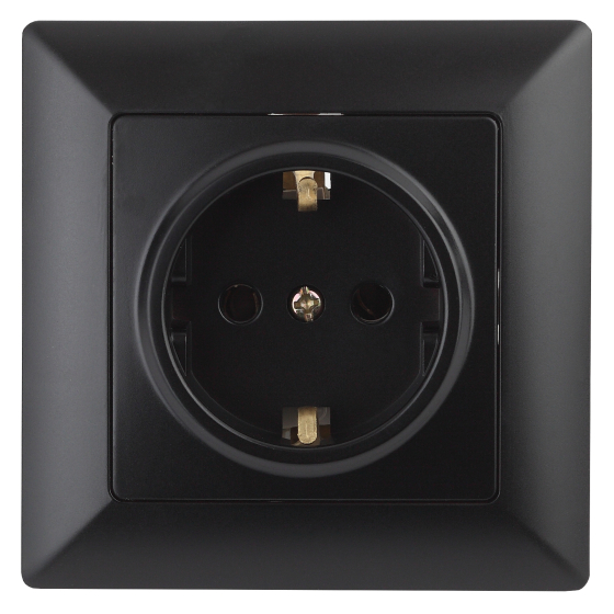 Розетка серии Intro Solo скрытой установки цвет антрацит 4-202-05. Номинальные характеристики 16А 250В. Розетка выполнена из термопластика, укомплектована одноместной рамкой, оснащена винтовыми клеммами. Клеммы с двумя отверстиями позволяют соединять соседние розетки шлейфом. Установка в подрозетник производится как на монтажные лапки, так и на винты. Для установки 2-х и более устройств в несколько подрозетников в ряд дополнительно используются многоместные рамки: 2-х постовая – 4-502-хх, 3-х постовая 4-503-хх, 4-х постовая – 4-504-хх (где хх – цветовой код: 01 – белый, 02 – слоновая кость, 03 – алюминий, 04 – шампань, 05 – антрацит, 10 – венге, 11 – сосна).