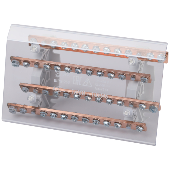 Шинные распределительные блоки ШРБ представляют собой набор клеммных зажимов в виде токоведущих шин в компактном корпусе с защитным экраном и предназначены для создания упорядоченных систем в распределительных шкафах и структурированного подключения подходящих и отводных линий. Изделие имеет удобную сборно-разборную конструкцию, которая в значительной степени облегчает процесс монтажа и подключения и не требуют предварительной подготовки.