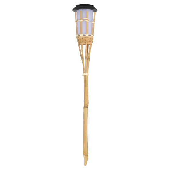 ЭРА ERASF22-24 (арт. Б0053382) – садовый светильник в виде факела на высокой бамбуковой ножке. Высота светильника – 90 см, диаметр плафона – 12 см. Всепогодный светильник садовый не боится осадков, ветра и прямых солнечных лучей. Изготовлен из высокопрочных материалов. Солнечная батарея, расположенная в верхней части светильника, накапливает световую энергию в течение дня. Вечером бамбуковый LED-факел автоматически включается и светит уютным тёплым светом. Уличный светильник ЭРА "Факел" устанавливается в грунт. Светит от полной дневной подзарядки до 8 часов. Бамбуковый дизайн органично дополняет атмосферу загородного отдыха.