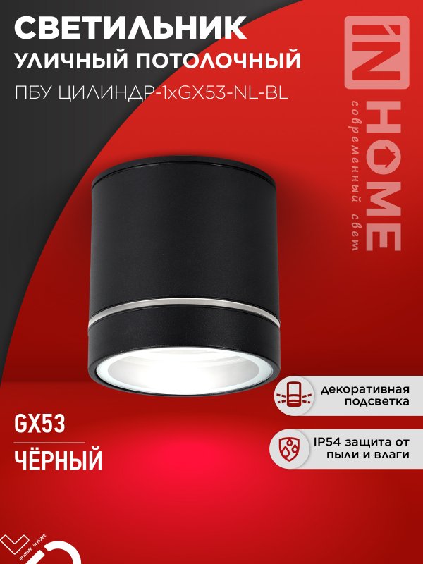 Светильники уличные потолочные серии ЦИЛИНДР под лампу c цоколем GX53 c подсветкой предназначены для освещения террас, веранд и беседок.